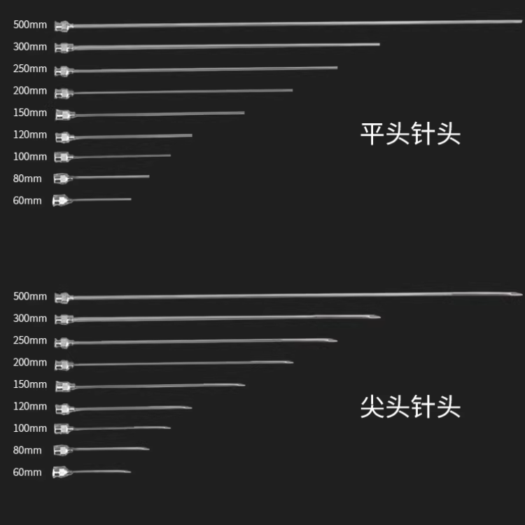 规格:60mm-500mm,号数是国内叫法,G数是国际标准,号数越大针头越粗G数越大针头越细。